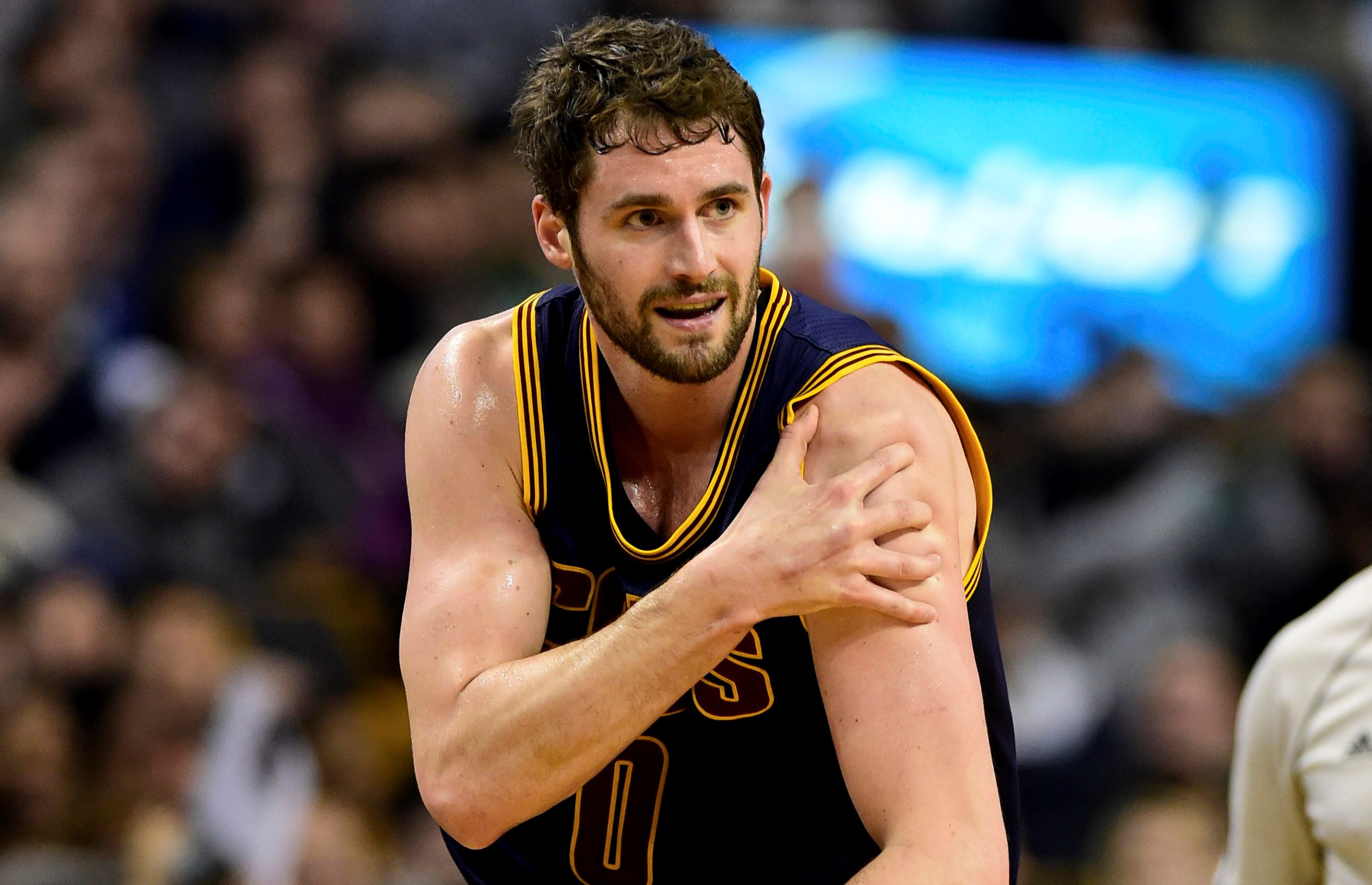 Cleveland Cavaliers forward Kevin Love suffers a dislocated shoulder in game four of the playoff series against the Boston Celtics Sunday. Love blames Boston's Kelly Olynyk, who yanked on his arm, for the injury. "I thought it was a bush-league play," Love said after the game. The Cavaliers won 101-93 to sweep the Celtics. h